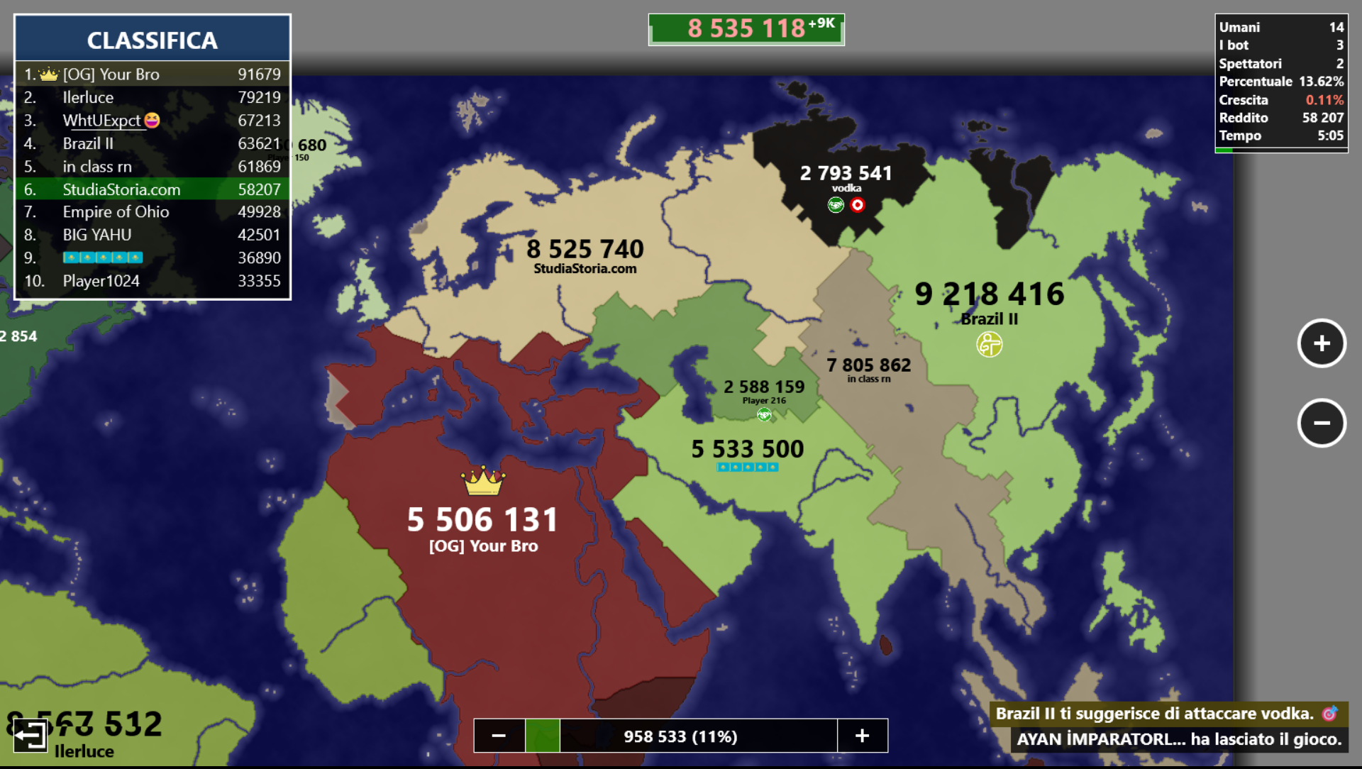 Arrivi al mid-game (la fase centrale della partita) di Territorial.io. Hai giocato…