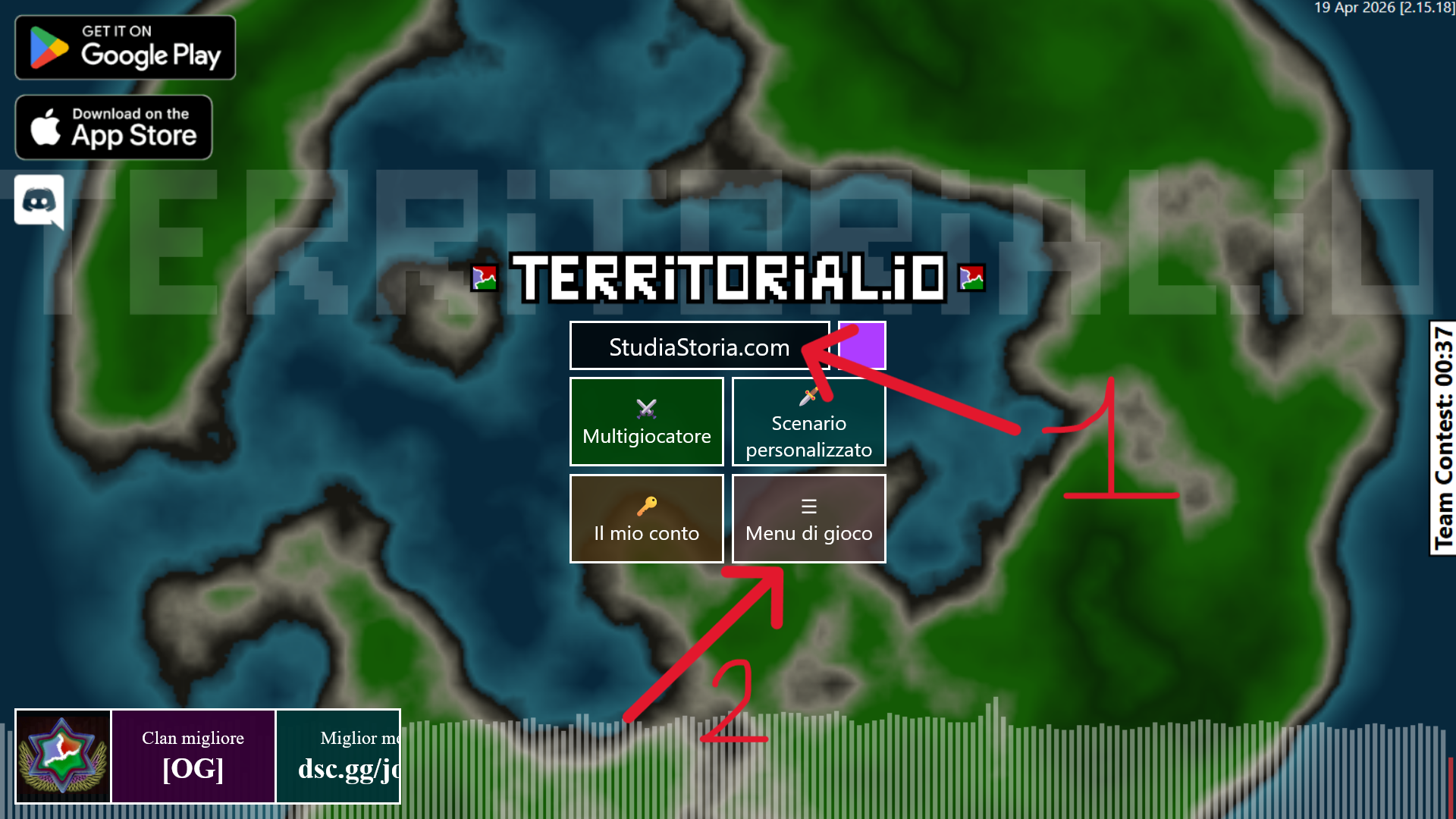 Per prima cosa bisogna digitare nella barra di ricerca del proprio browser il seguente url: https://territorial.io, a questo punto ci troveremo nella schermata iniziale del gioco, con quattro bottoni disponibili, quelli che interessano a noi sono solamente due.