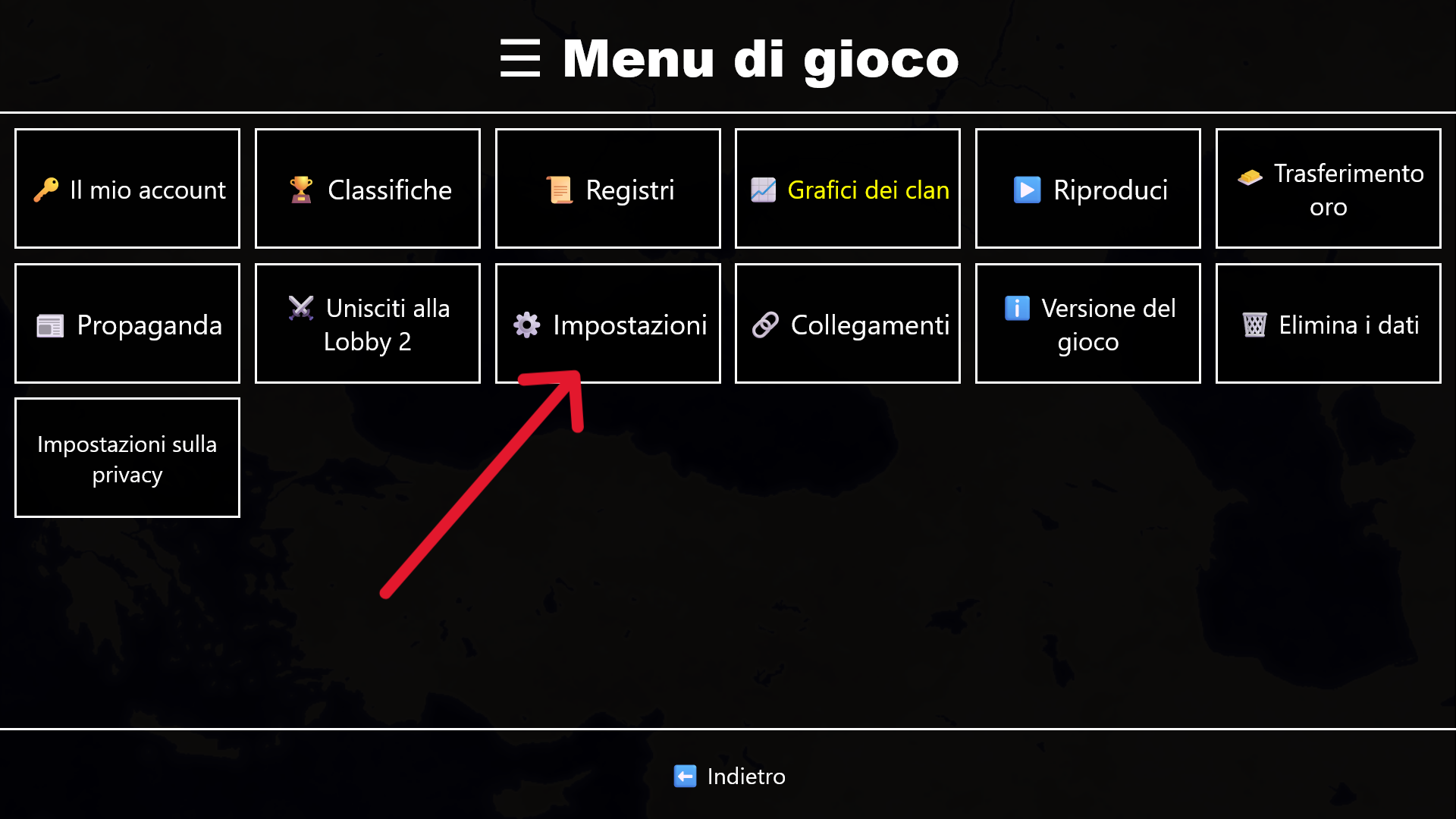 Successivamente suggerisco di fare click sul bottone marrone "menù di gioco", come illustrato nell'immagine con la freccia numero 2.