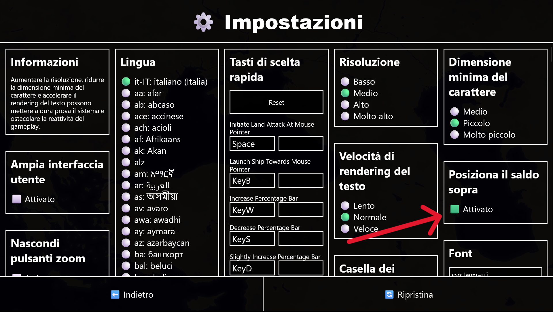 Infine attivare la casella "Posiziona il saldo sopra". Questo ci servirà per capire velocemente durante la partita quante truppe hanno gli avversari, per permetterci di attaccare al momento perfetto.