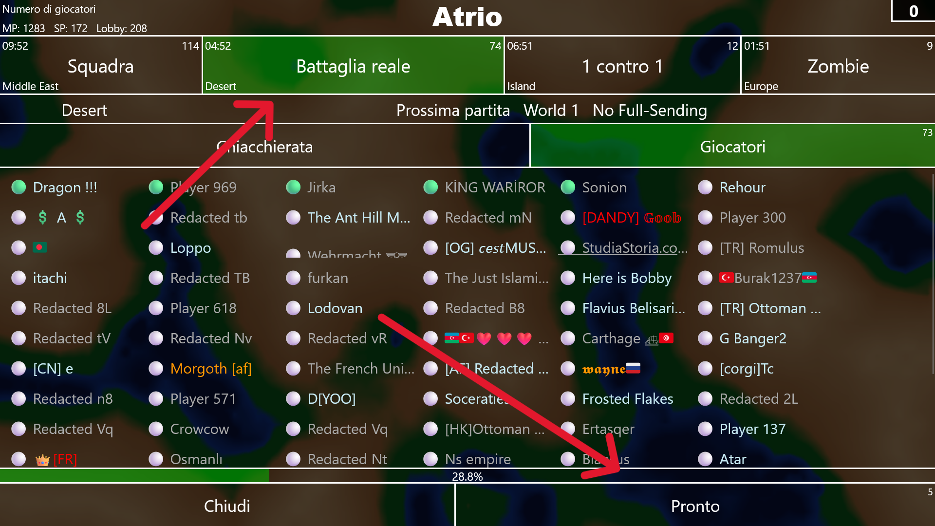 Per avviarla dobbiamo cliccare su "Multigiocatore", in seguito io consiglio caldamente la modalità "Battaglia Reale" poichè permette di capire perfettamente tutte le dinamiche di questo gioco. Quando si è pronti per giocare bisognerà schiacciare il pulsante "Pronto", affinchè diventi verde.